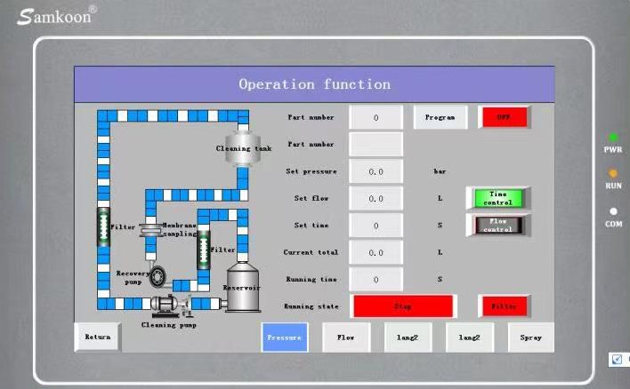 Параметры очистки хранилища, такие как давление очистки, параметры потока, настройки скорости потока, время очистки, режим очистки, могут быть настроены в соответствии с различными стандартами определения чистоты.