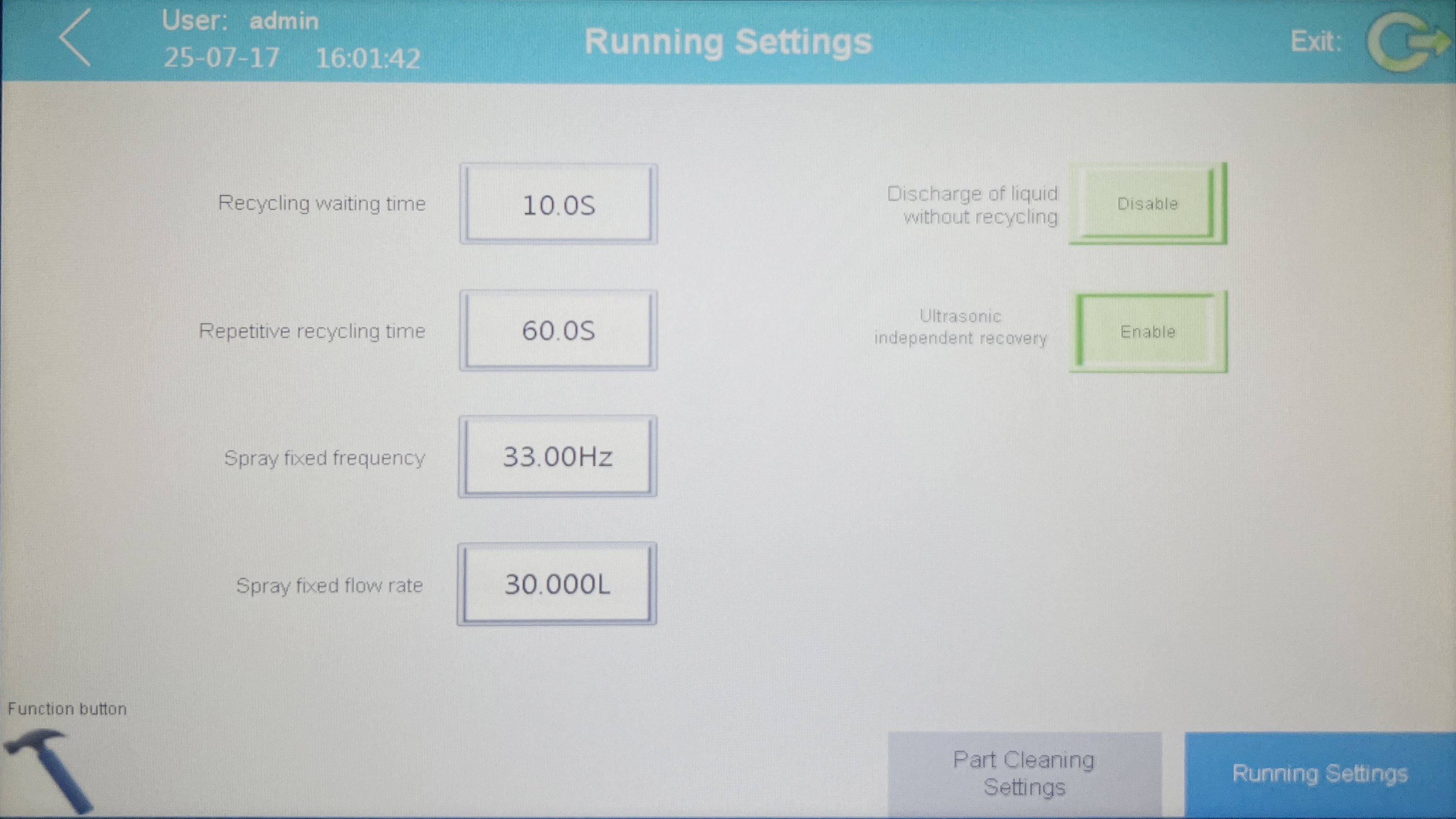 Детали проверяются распылителем, установленным на определённое давление или расход и угол наклона, после чего извлекаются и собираются остаточные частицы. Можно задать давление распыления (национальный стандарт) или расход (европейский стандарт), а сам процесс может выполняться количественно или по времени с заданным расходом. Конкретные требования основаны на технических характеристиках чистоты различных компонентов.
