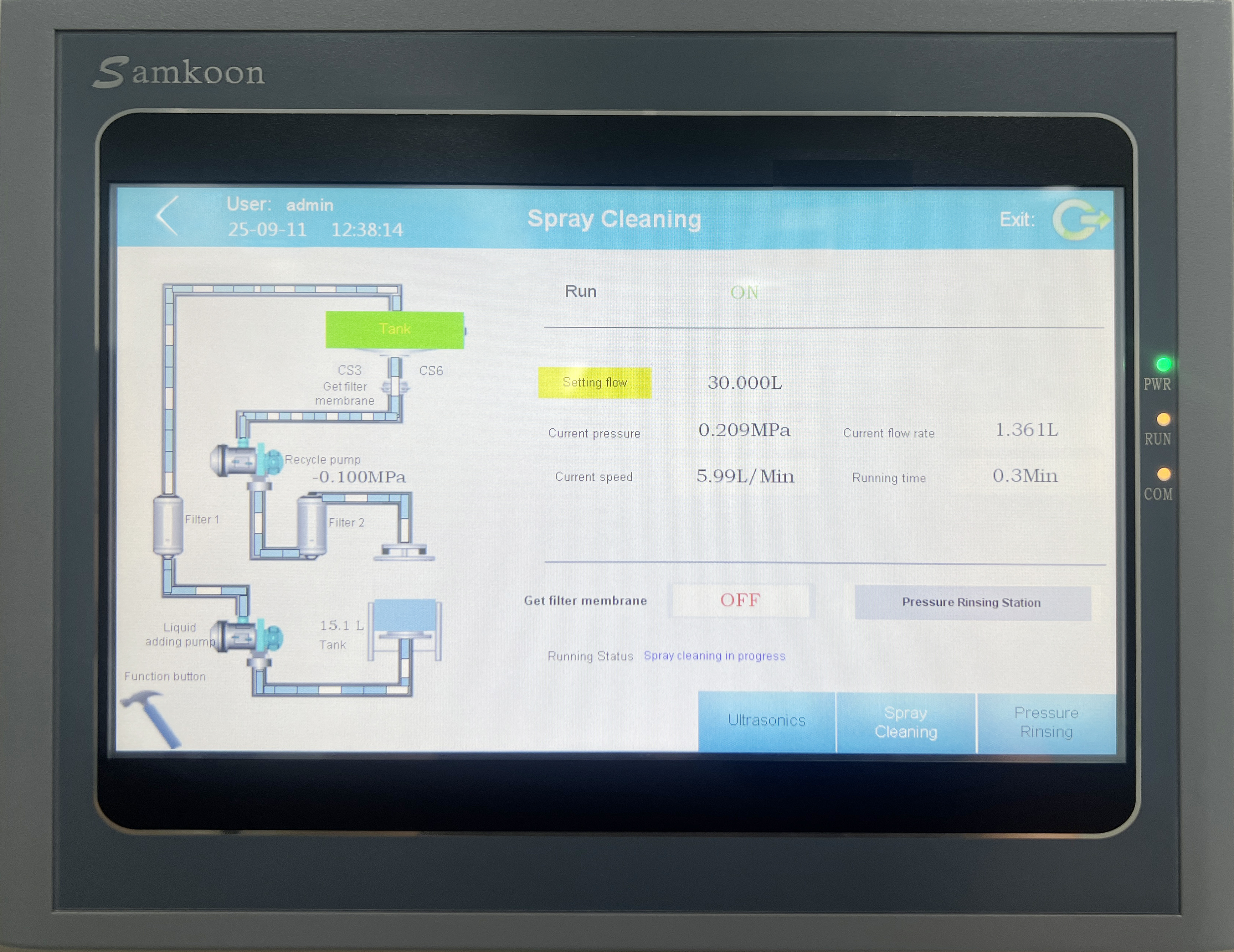 После очистки компонентов моющие средства могут синхронно и автоматически фильтроваться и повторно использоваться в онлайн-фильтре, что позволяет своевременно собирать твердые частицы с поверхности компонентов в моющих средствах и переносить их на поверхность мембраны фильтра-детектора. Ручная фильтрация моющих средств не требуется.